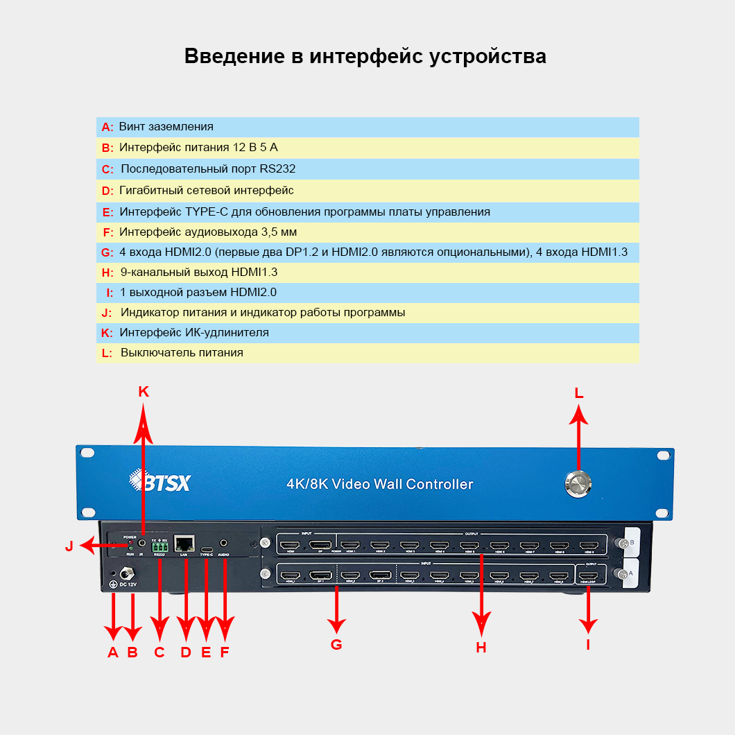 - Поддержка 8 входов, включая 4 канала 4K60, включая 2 двуканальных входа HDMI/DP, 4 канала 1080P60, поддержка 9 каналов 1080P60. Многоканальный вход и выход для удовлетворения различных требований.