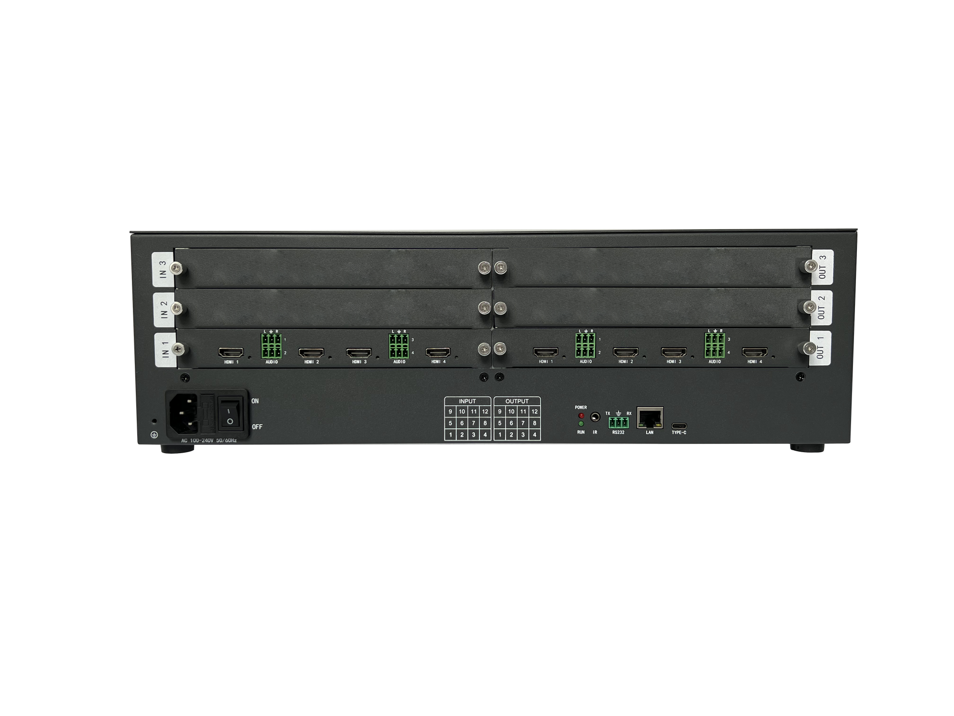 - Поддерживает 12 входов HDMI и 12 выходов HDMI.