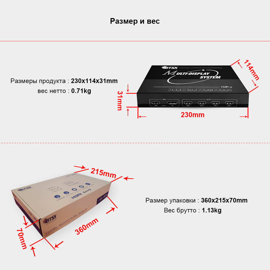 | Тип выходного интерфейса | 4 выхода HDMI; 1 аудиовыход 3,5 мм |